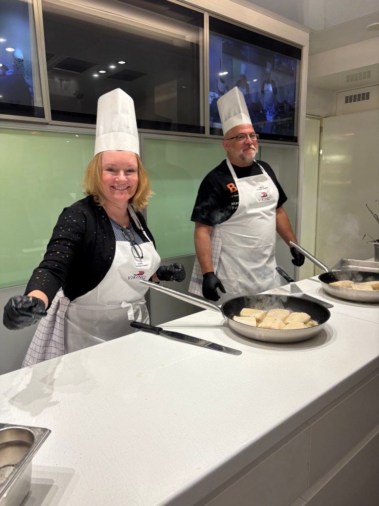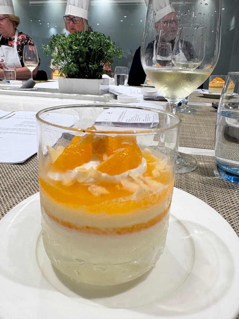 We are having fun learning new things. We tried a California cooking class where we learned to make crab cakes, pan roasted halibut with roasted cauliflower, and Ojai mandarin parfaits. It was really fun, and we hope to remember some of it when we get home.