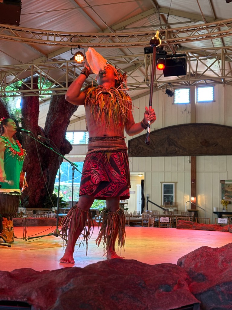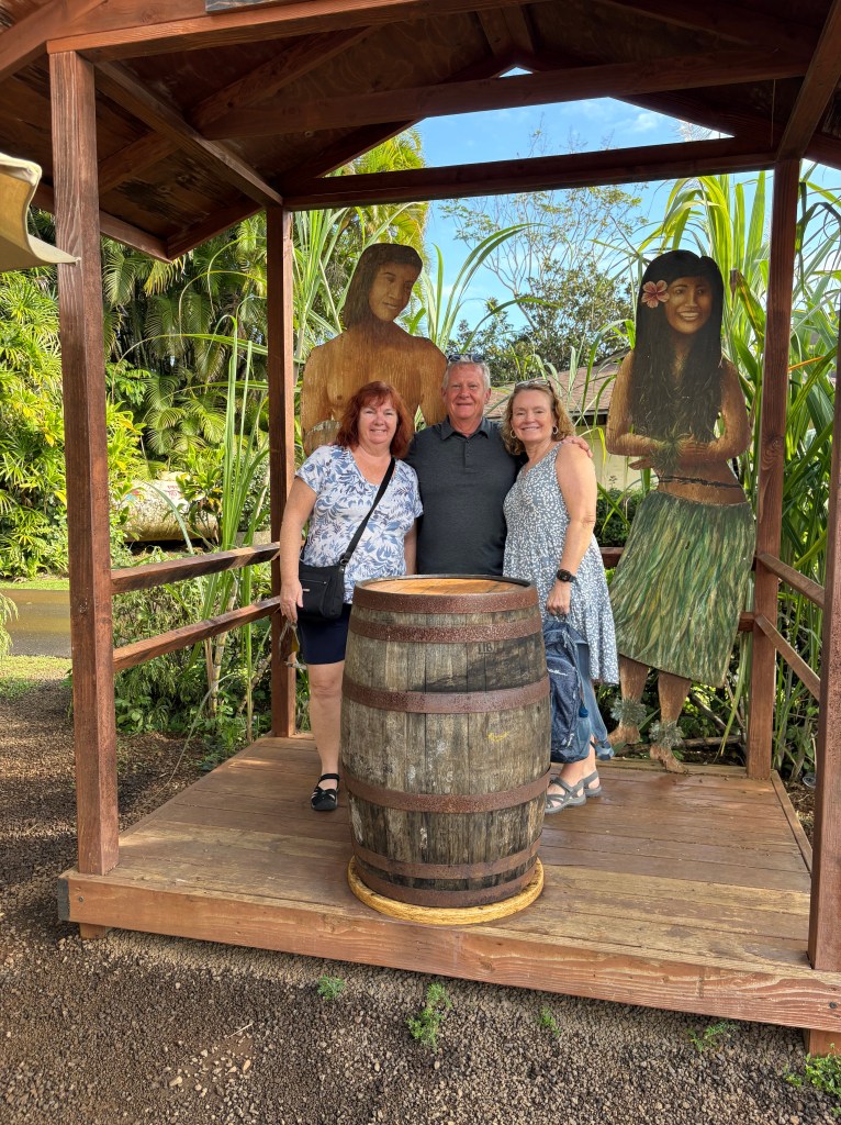 We visited a Hawaiian plantation where we saw lots of roosters, chickens and pigs. We saw traditional Hawaiian dancing and Mary was chosen as a lead dancer.