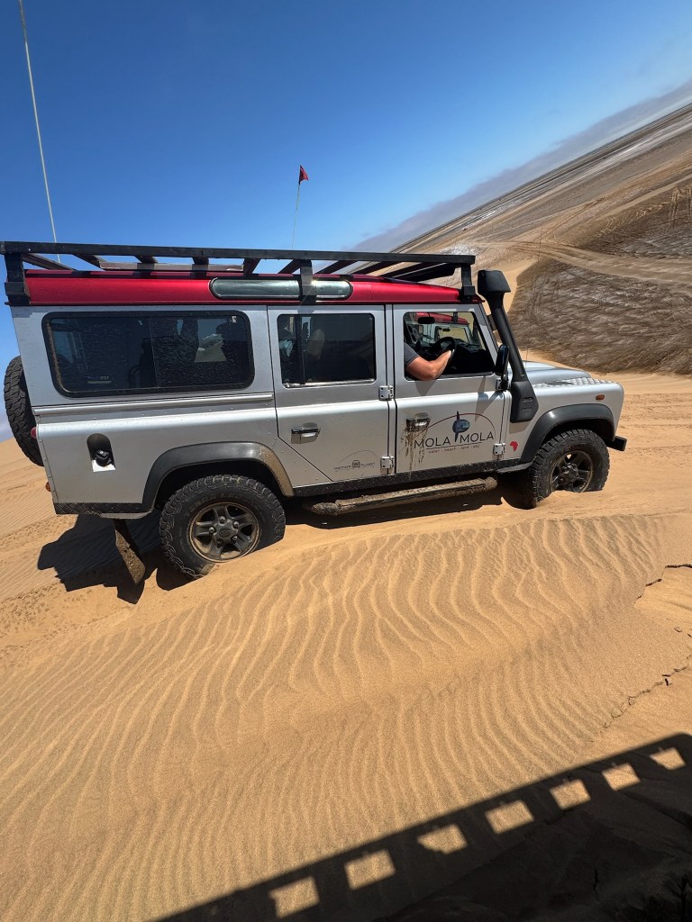 After kayaking we rode through the Namib Desert in a Land Rover with our intrepid guide, Peter.