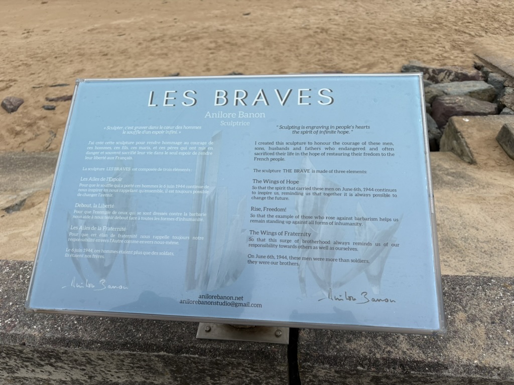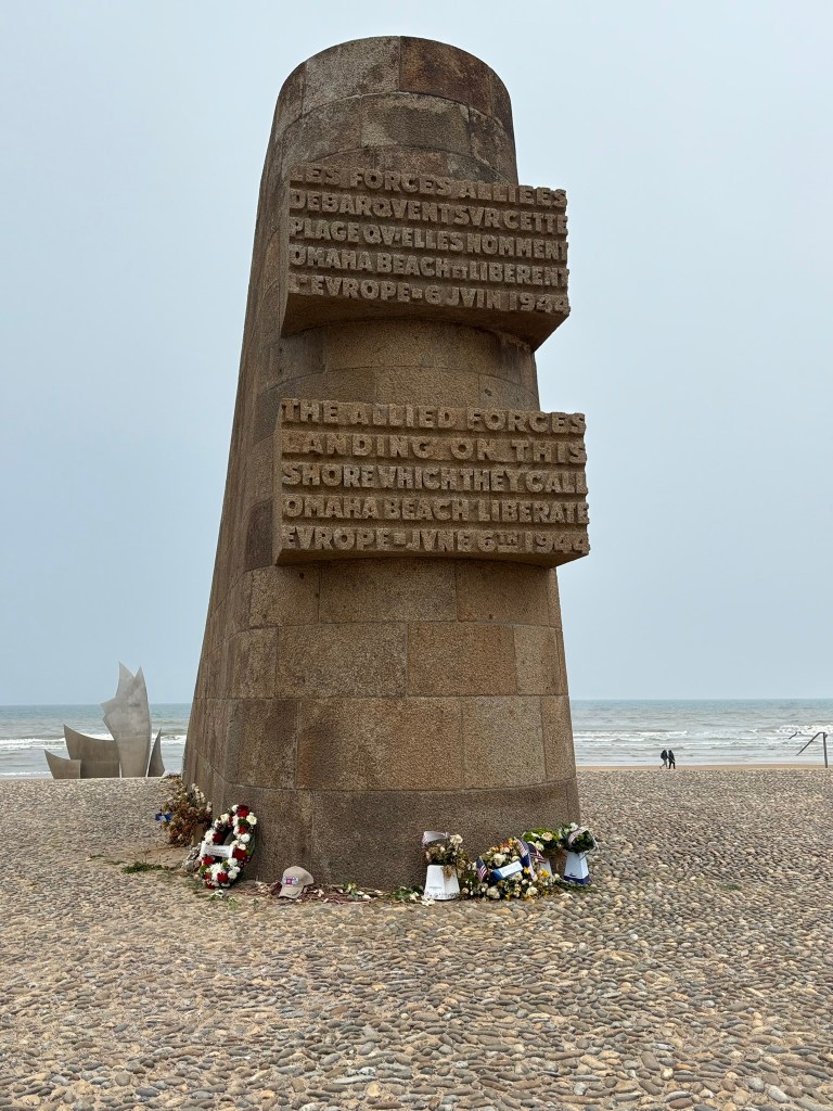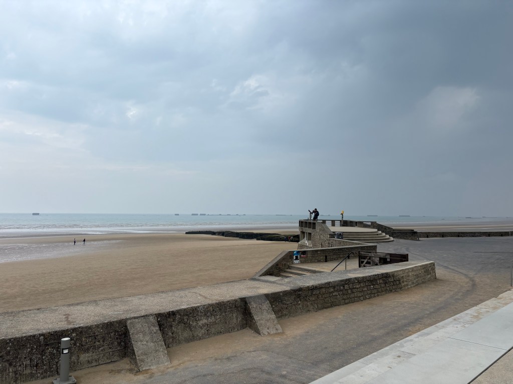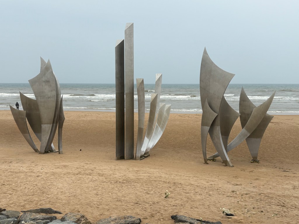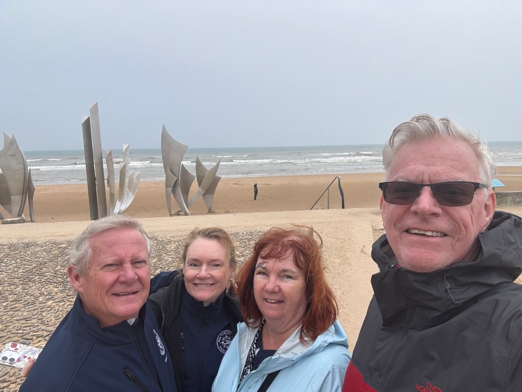 Today we visited several of the beaches of Normandy. The US, UK, and Canada landed here to take France back from Hitler. This was a crucial step to eventually reclaiming Europe. It was fascinating to learn about the artificial harbor created to bring the equipment and men to the shore. There are still some remnants in the sea there. We had never thought about how all the tanks and trucks made it to land. The engineering was amazing.